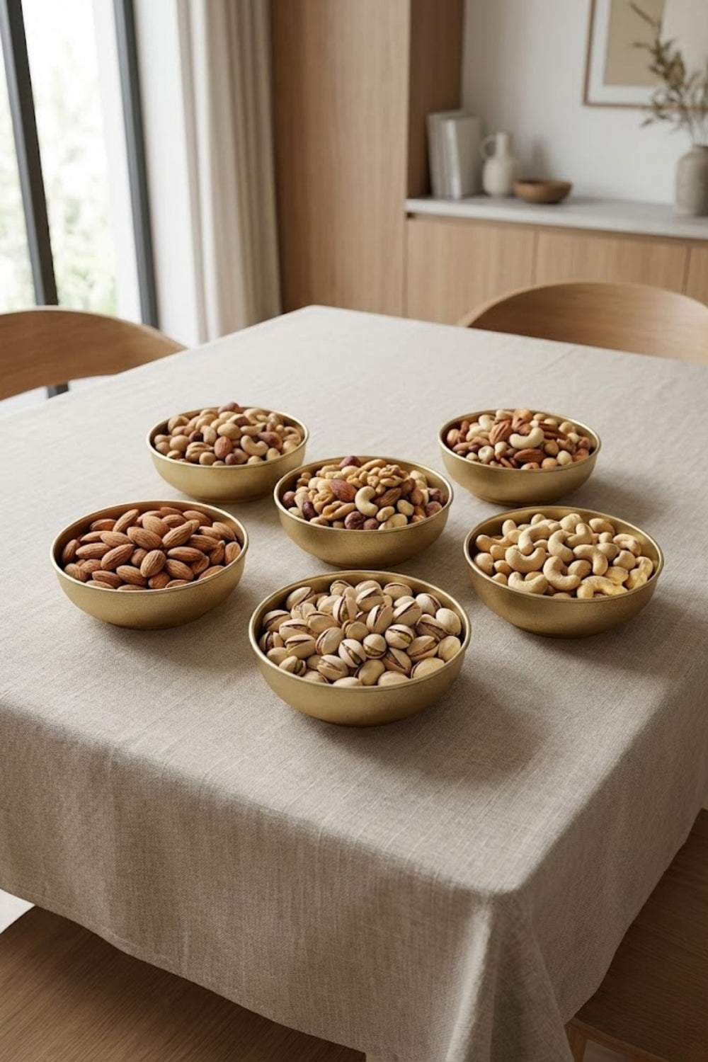 Gold Metal Çerezlik Seti 6’lı, şık ve modern tasarımıyla çerez, kuruyemiş ve atıştırmalık sunumlarınıza estetik bir dokunuş katar.