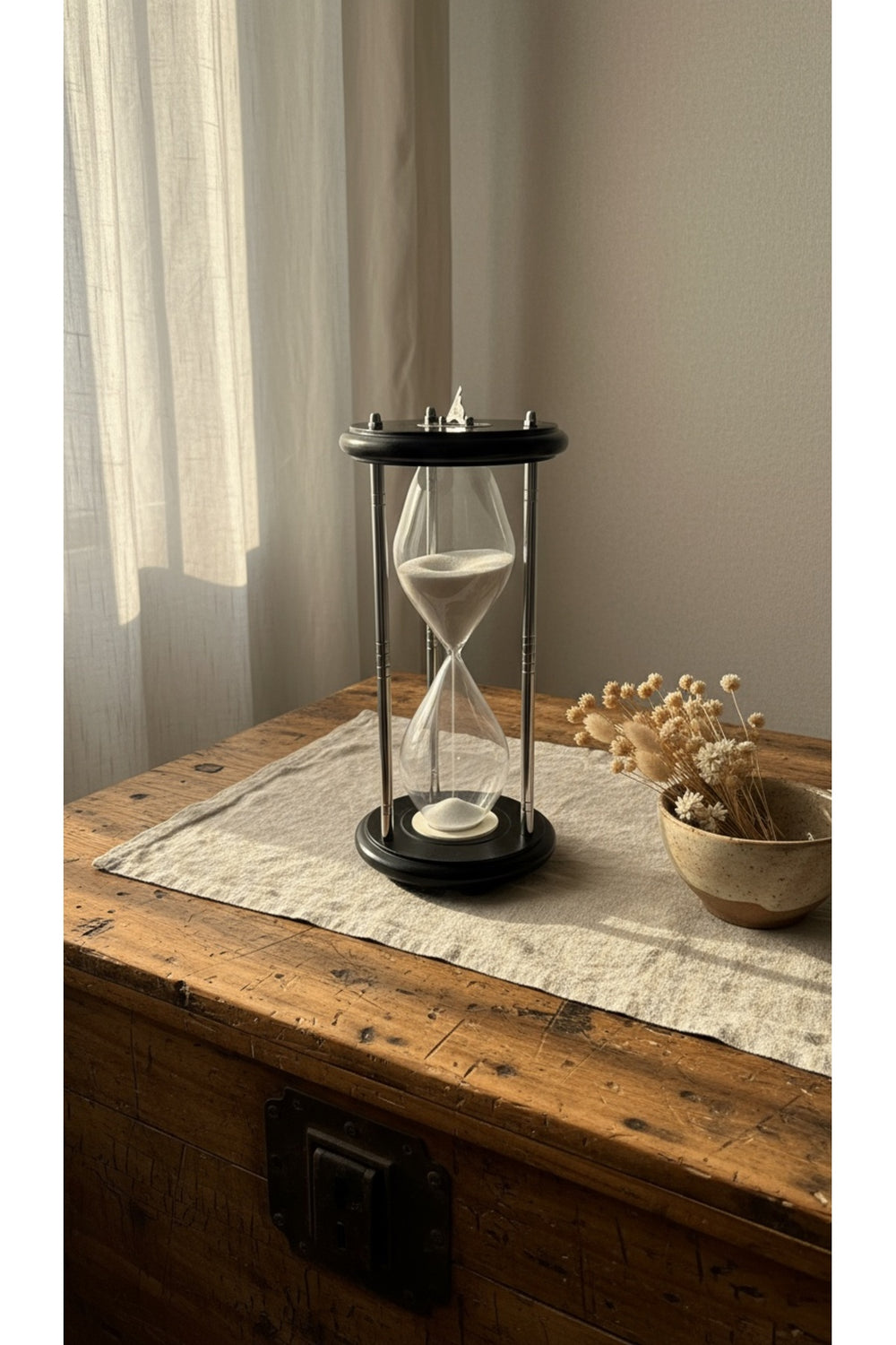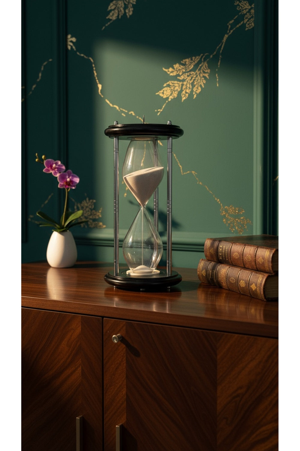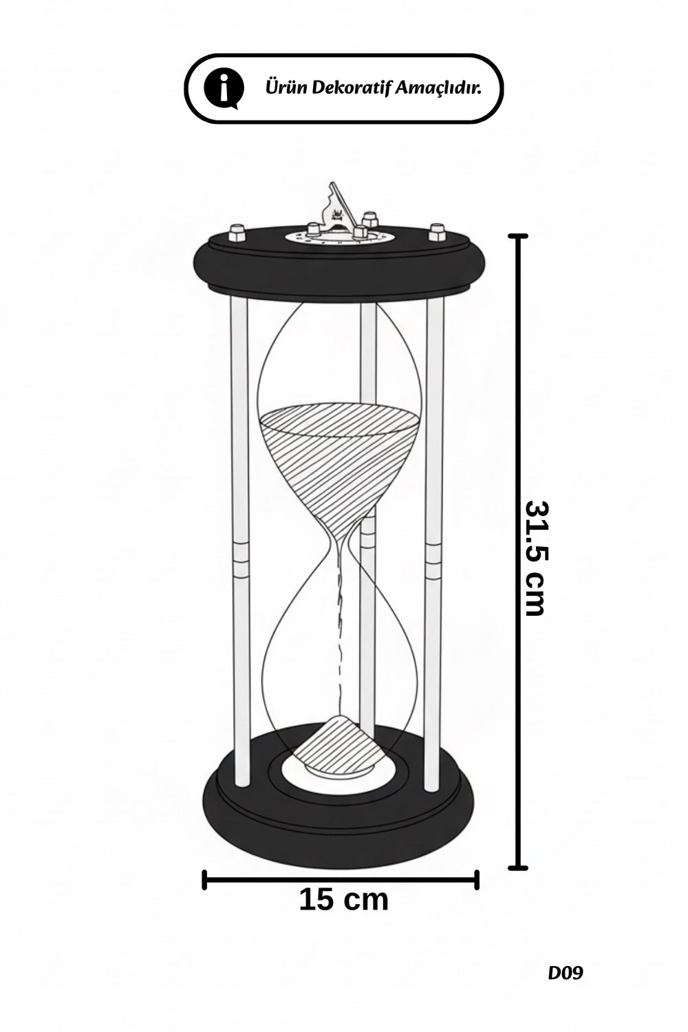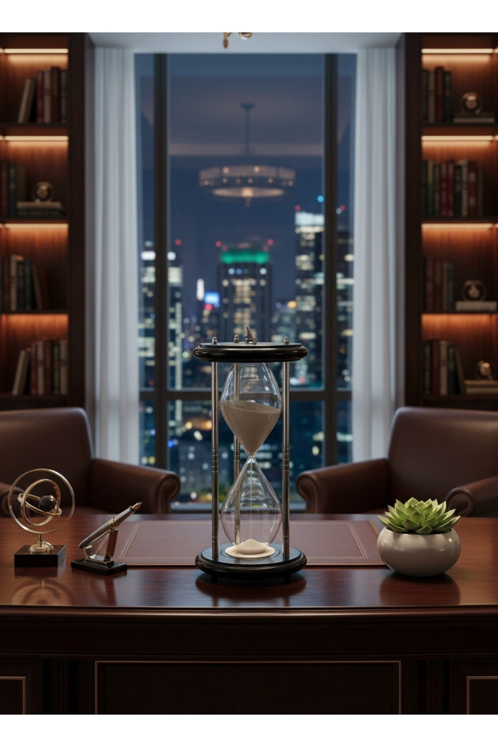 Standart masaüstü aksesuarlarının çok ötesinde, bulunduğu mekanın tüm aurasını değiştirecek prestijli bir "imza parça". 31.5 cm'lik devasa boyutu ve 15 cm'lik geniş tabanıyla bu kum saati, gücü ve zarafeti temsil eder.