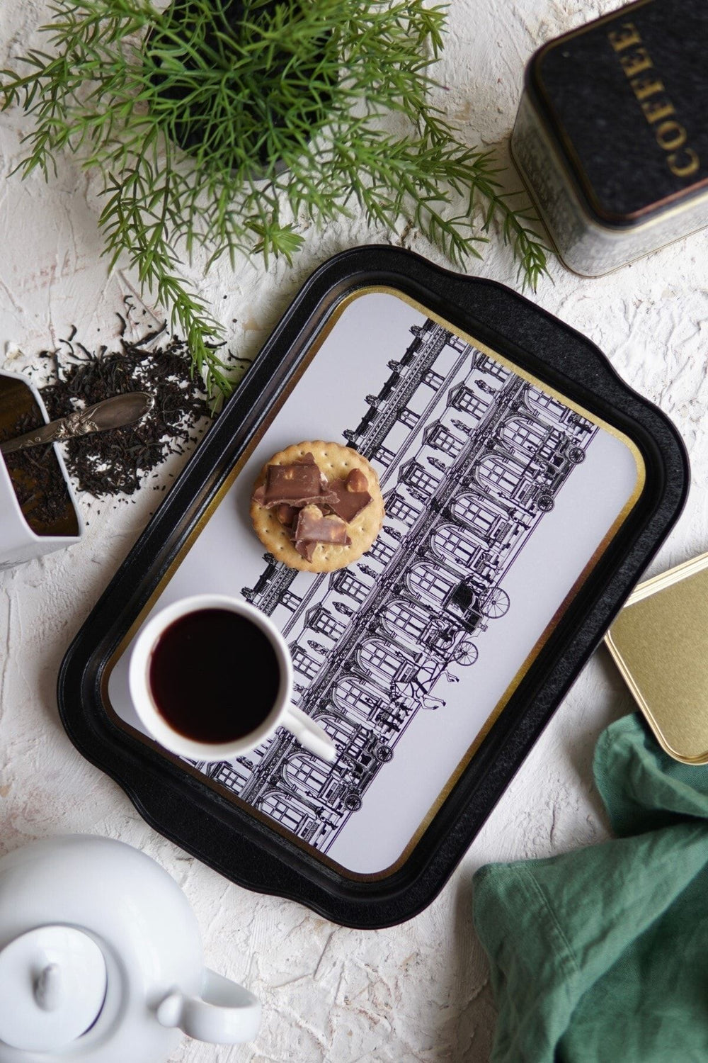 Evle kulplu tepsi, hem estetik görüntüsüyle hem de pratik kullanımıyla sofralarınıza zarafet katar.