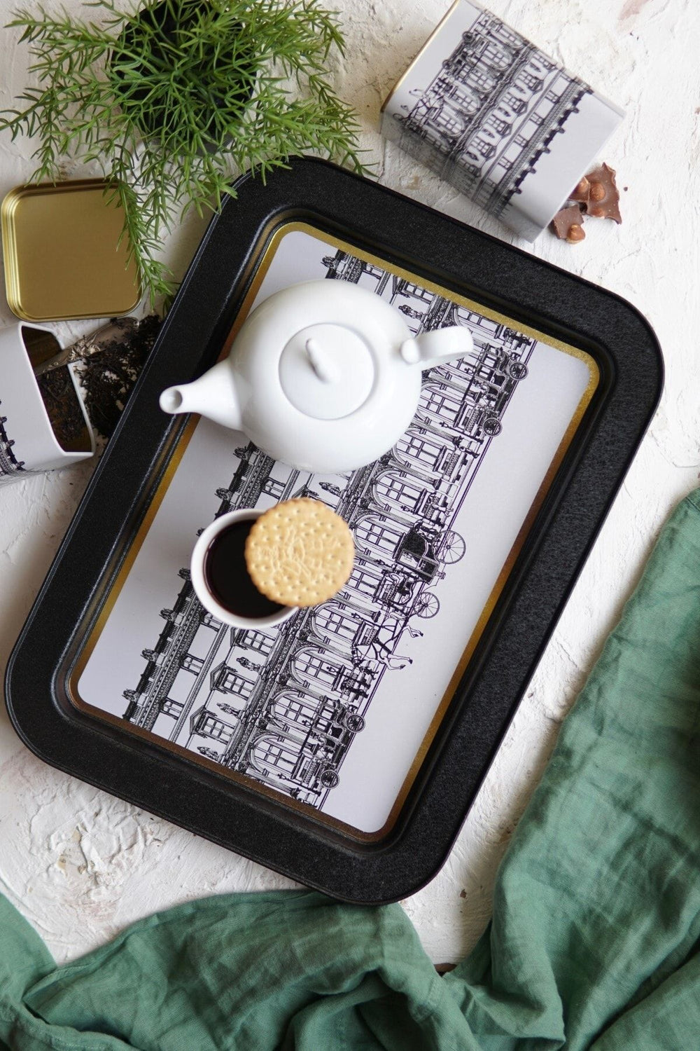 Evle grande metal tepsi, geniş yüzeyiyle kalabalık sofralar ve kapsamlı sunumlar için mükemmel bir tercihtir. Kahvaltı, çay saati ya da ikramlıklar için büyük hacimli kullanım sunar. Şık görünümüyle mutfaklarınıza estetik katar.