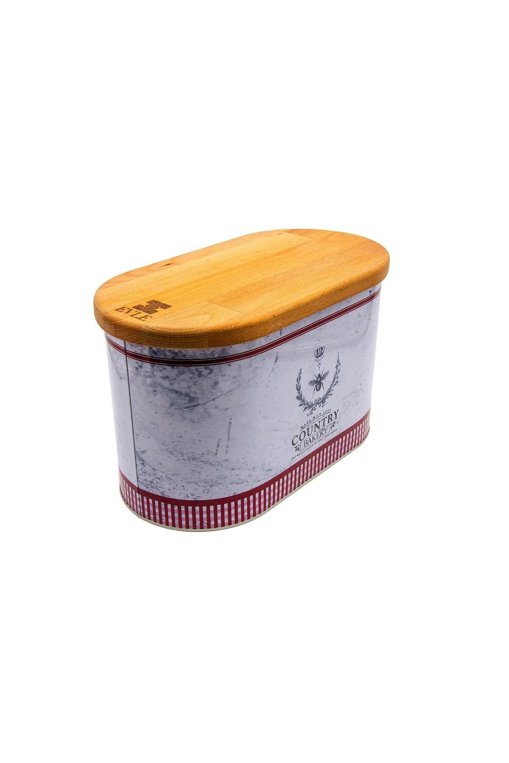 Dayanıklı metal malzeme kullanımı sayesinde uzun ömürlü ve sağlam bir yapı sunar; 11 litre kapasitesi ile geniş iç hacmi, ekmek ve diğer unlu mamulleri düzenli bir şekilde saklamanız için idealdir; Country Bakery desenli tasarımı, mutfak dekorasyonunuza rustik bir dokunuş katar ve estetik bir görünüm sağlar; Ahşap kapak, hem şık bir detay olarak öne çıkar hem de kolay erişim için pratik bir kullanım sunar;