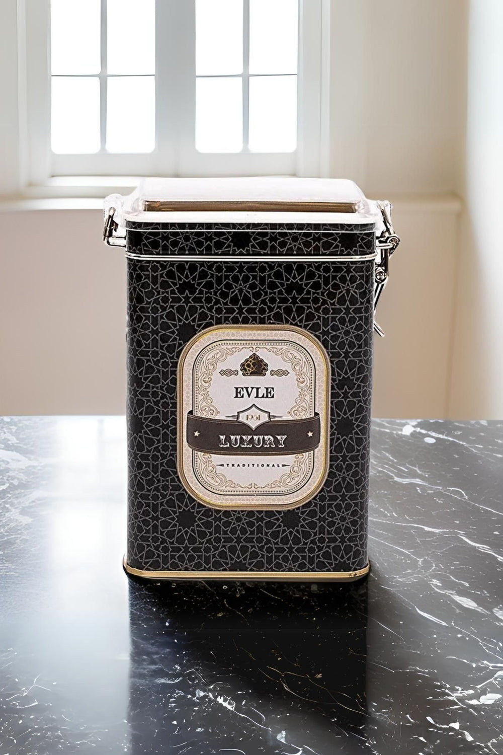 Evle şeffaf kilitli kapaklı dikdörtgen metal kutu, modern mutfaklarda hem düzen hem de görsel estetik sağlayan fonksiyonel bir üründür. 1,3 litrelik hacmiyle kahve, çay, bakliyat ve kuru gıdalar için ideal bir saklama çözümüdür.