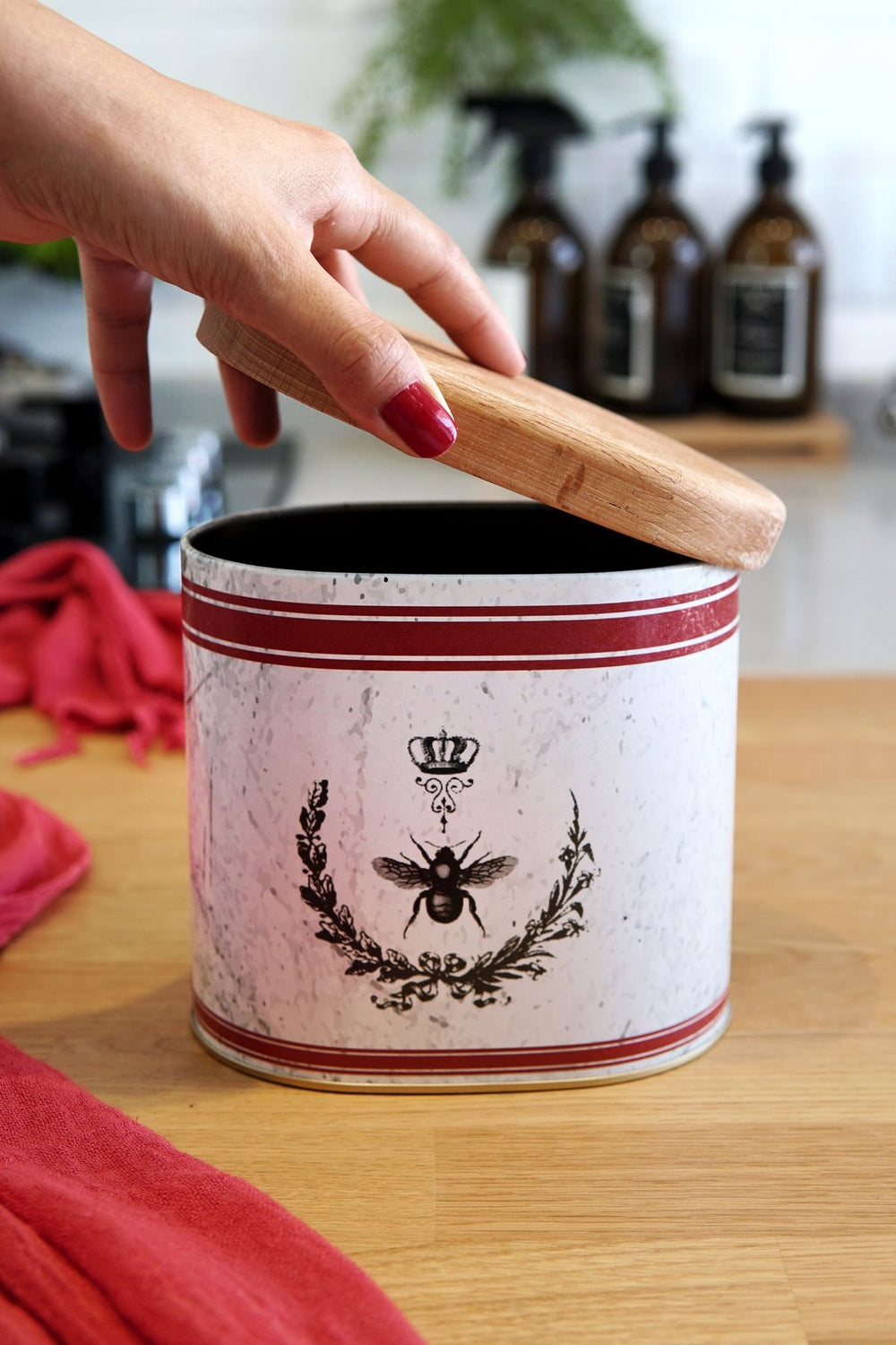 Evle küçük oval metal kutu, zarif oval formu ve doğal ahşap kapağıyla mutfağınıza modern ve doğal bir dokunuş katar. 2 litrelik kapasitesiyle çay, kahve, şeker, kuruyemiş ve diğer kuru gıdaların taze kalmasını sağlar.