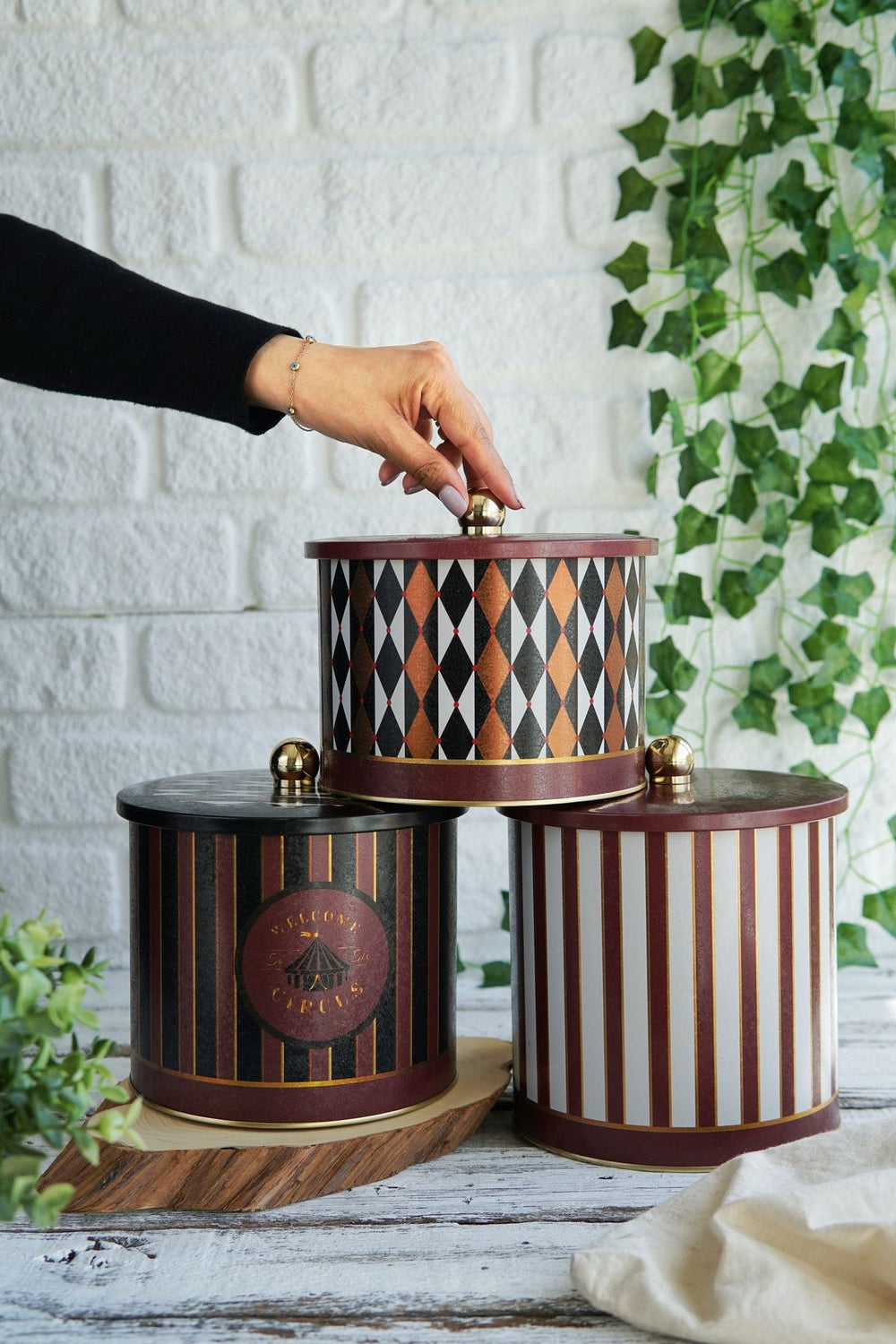 Yuvarlak Kutu Ø175, Topuz Kulp, 3’lü Set, mutfağınızda hem fonksiyonel hem estetik bir depolama çözümü sunar. Farklı yüksekliklere sahip, 17,5 cm çapındaki bu üç metal kutu, geniş hacimleriyle bakliyat, makarna, şeker, un gibi kuru gıdaların muhafazası için idealdir. Topuz kulplu kapakları sayesinde kolay açılır kapanır ve mutfak dekorasyonunuza zarif bir dokunuş katar.