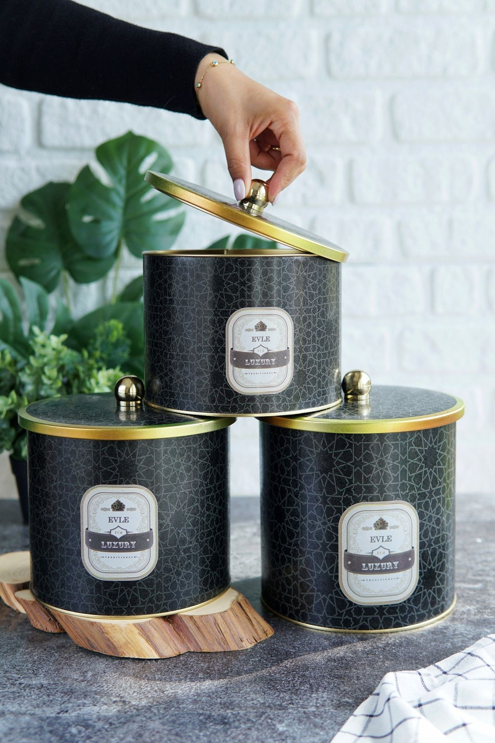 Yuvarlak Kutu Ø175, Topuz Kulp, 3’lü Set, mutfağınızda hem fonksiyonel hem estetik bir depolama çözümü sunar. Farklı yüksekliklere sahip, 17,5 cm çapındaki bu üç metal kutu, geniş hacimleriyle bakliyat, makarna, şeker, un gibi kuru gıdaların muhafazası için idealdir. Topuz kulplu kapakları sayesinde kolay açılır kapanır ve mutfak dekorasyonunuza zarif bir dokunuş katar.