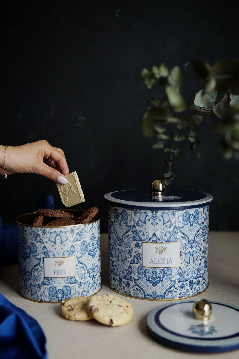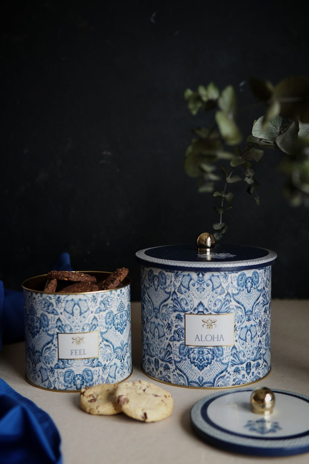 Ürün evet güzel ama hem kutuların birbiri ile tonları aynı değil hem kapaklar kutularıyla takım değil biri daha beyaz soluk mavi diğeri daha kremsi mavileri koyu