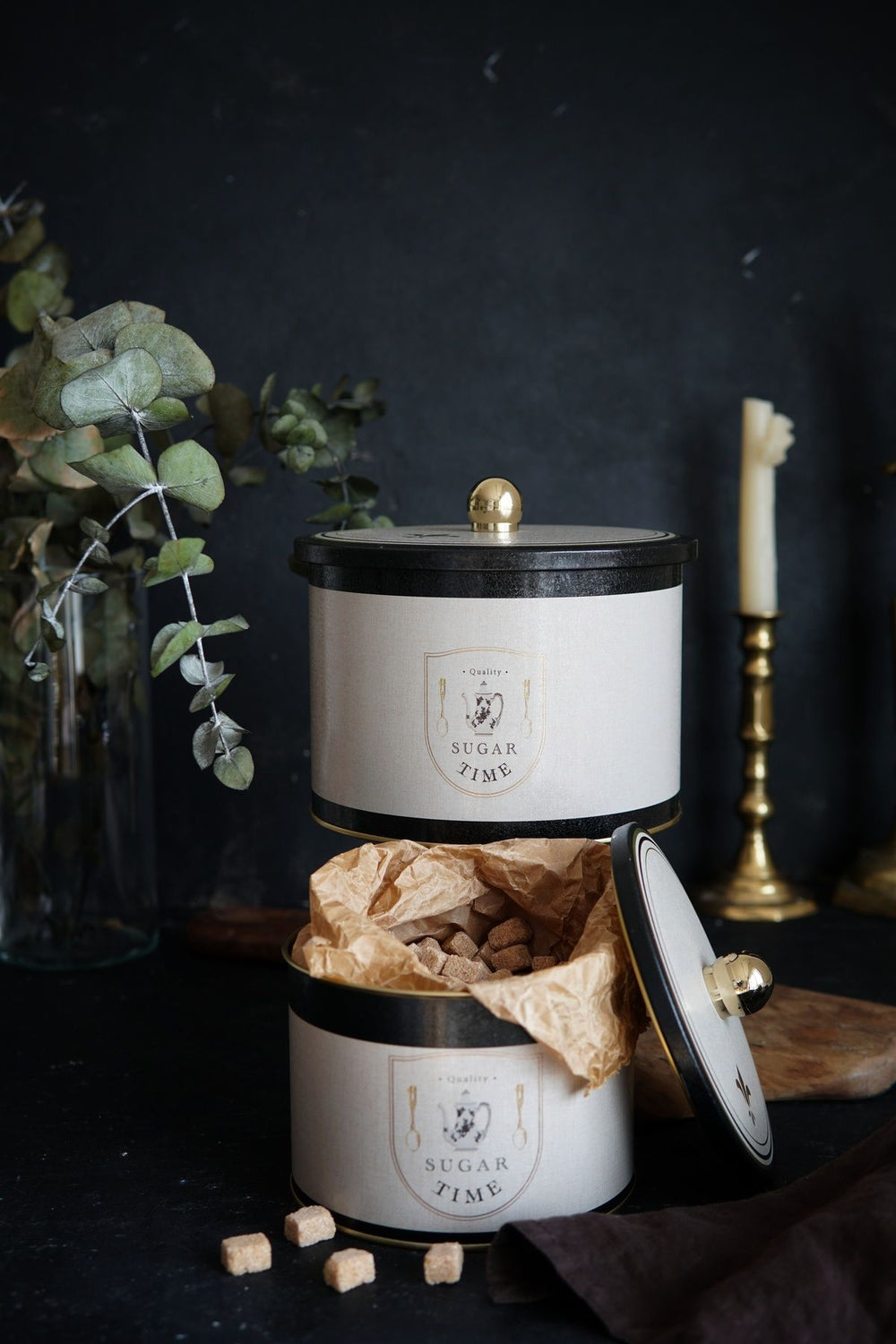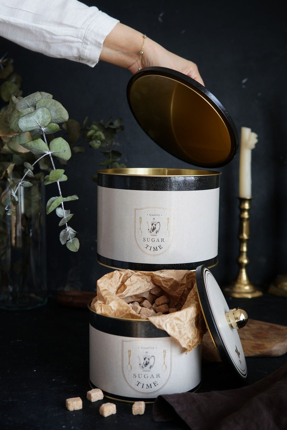 Topuz Kulplu 2’li Yuvarlak Metal Saklama Kabı Seti – Ø17,5x13 cm & Ø14x10 cm