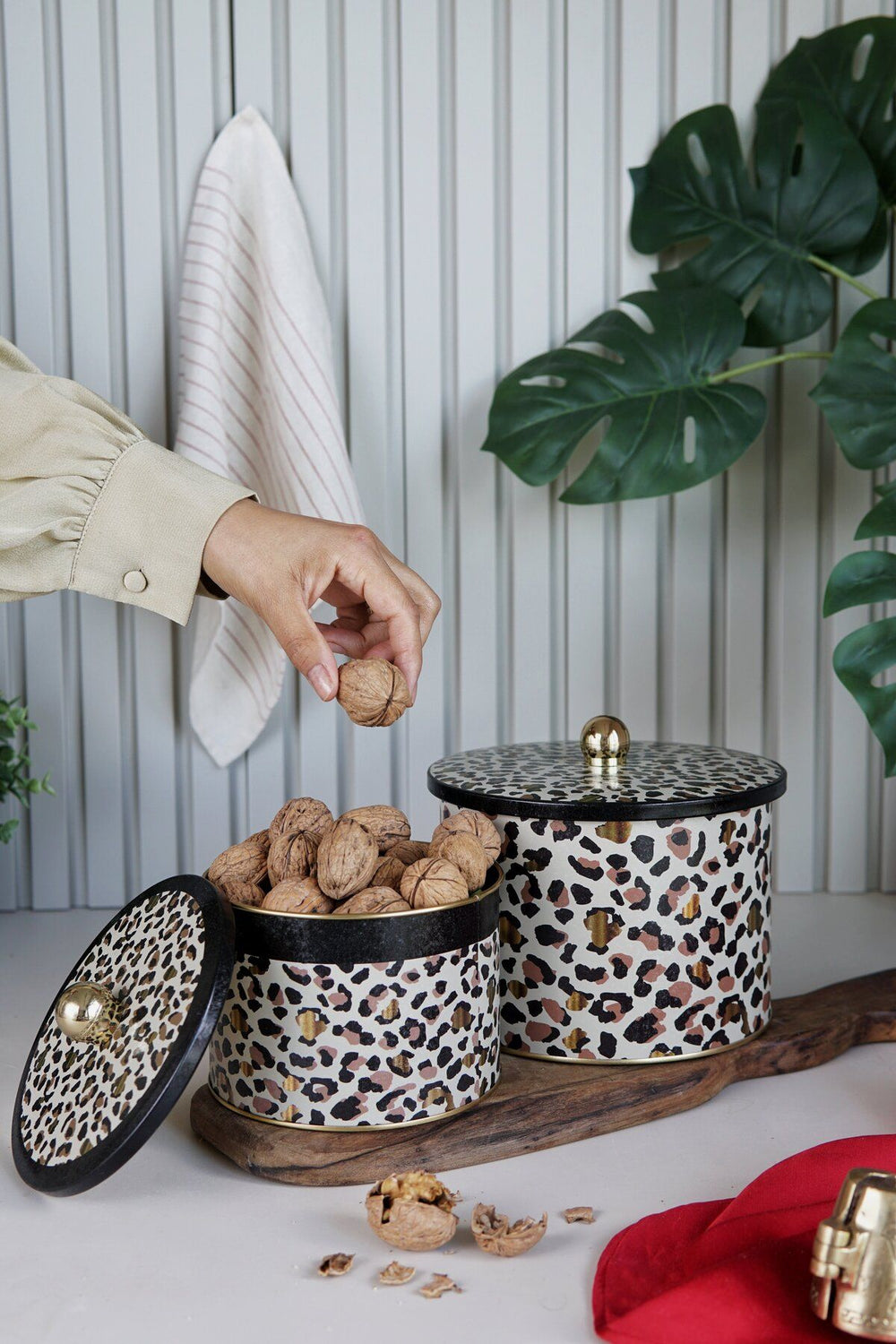 Topuz Kulplu 2’li Yuvarlak Metal Saklama Kabı Seti – Ø17,5x13 cm & Ø14x10 cm