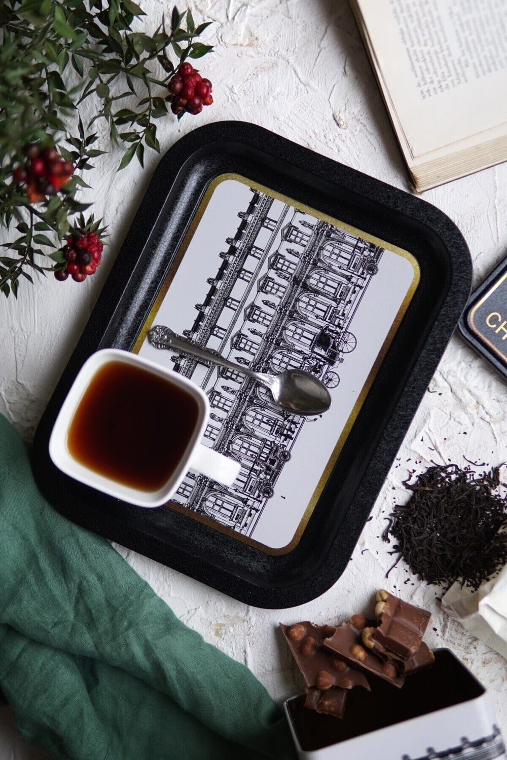 Evle küçük klasik tepsi, şık ve sade tasarımı ile kahvaltıdan ikramlara kadar her kullanım için uygundur. Dayanıklı metal malzemeden üretilmiş olup, hem ev hem profesyonel mutfaklar için ideal bir üründür.