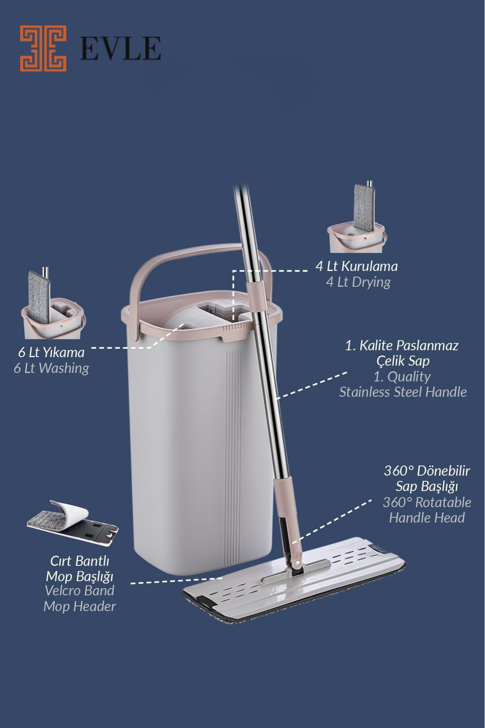 Ev temizliğinde hijyen ve pratikliği bir araya getiren EVLE Lavine Premium Flat Mop ile tanışın. Geliştirilmiş tablet mop sistemi sayesinde elinizi suya ve kire değdirmeden, eğilip doğrulmak zorunda kalmadan mükemmel temizlik sağlayın. Yıkama ve kurulama için ayrılmış özel hazneleri ile temizlik artık çok daha hızlı ve zahmetsiz.