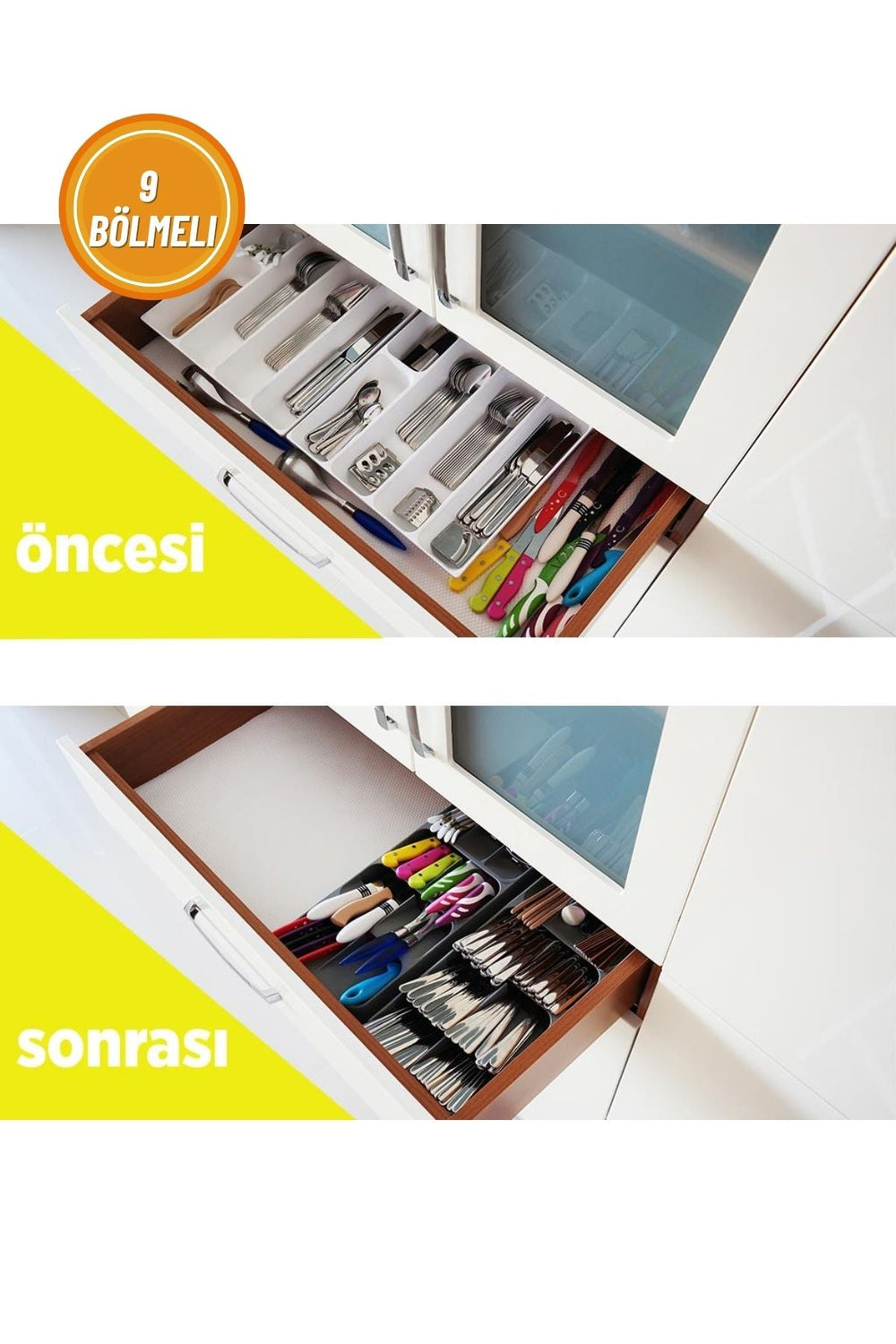 Bu çekmece kaşıklık, mutfak çekmecelerinizde düzeni sağlamak için mükemmeldir. Her bir bölme, farklı boyutlardaki çatal, bıçak ve kaşıklarınızı düzenli bir şekilde saklamanızı sağlar. Böylece mutfakta aradığınızı kolayca bulabilir ve zamandan tasarruf edebilirsiniz.