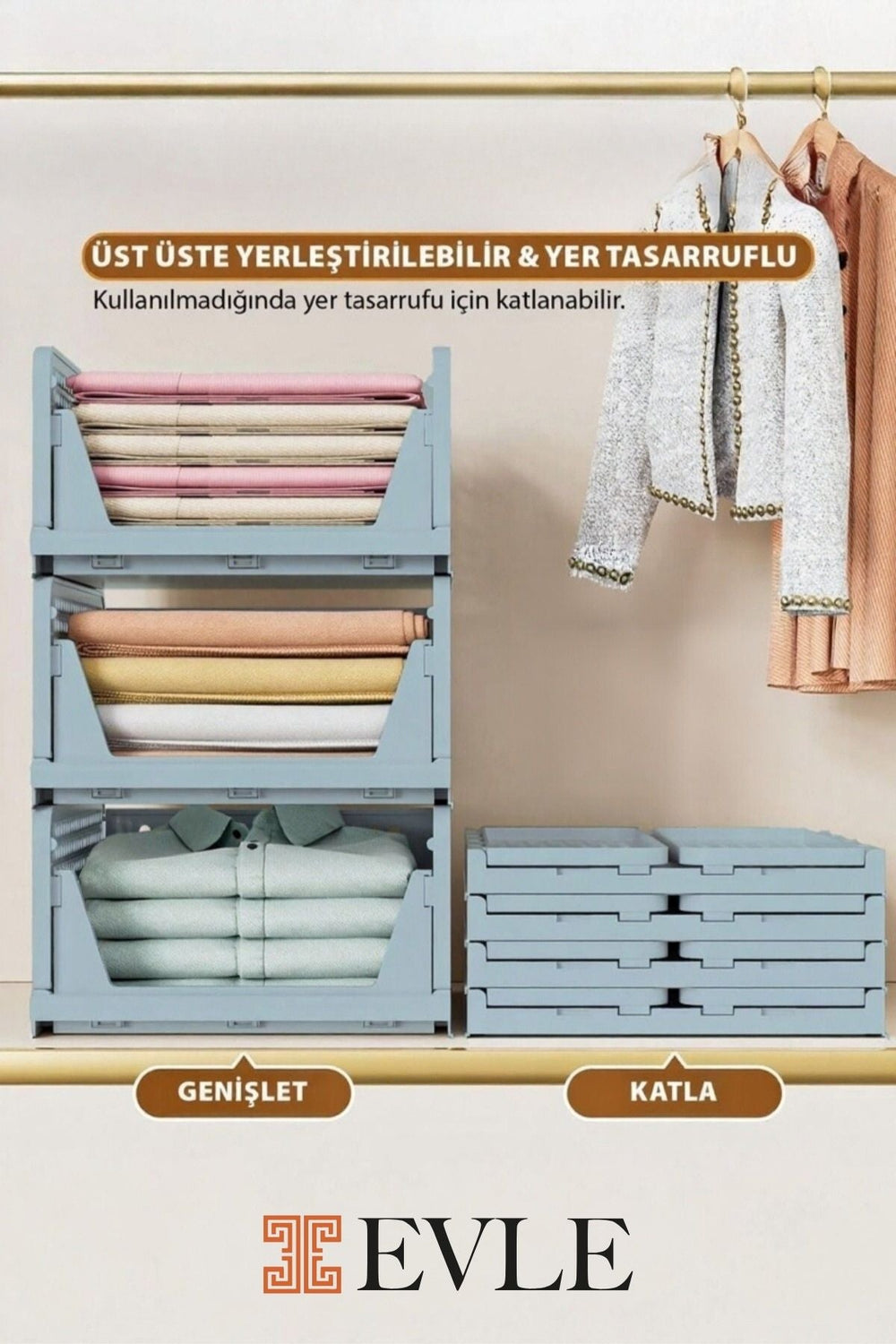 Gardırobunuzda devrim yaratmaya hazır mısınız? Fold & Go Katlanır 3'lü Organizer Kayar Raf ile tanışın. Bu yenilikçi dolap içi düzenleyici, dağınıklığı ortadan kaldırırken eşyalarınıza kolayca ulaşmanızı sağlar.