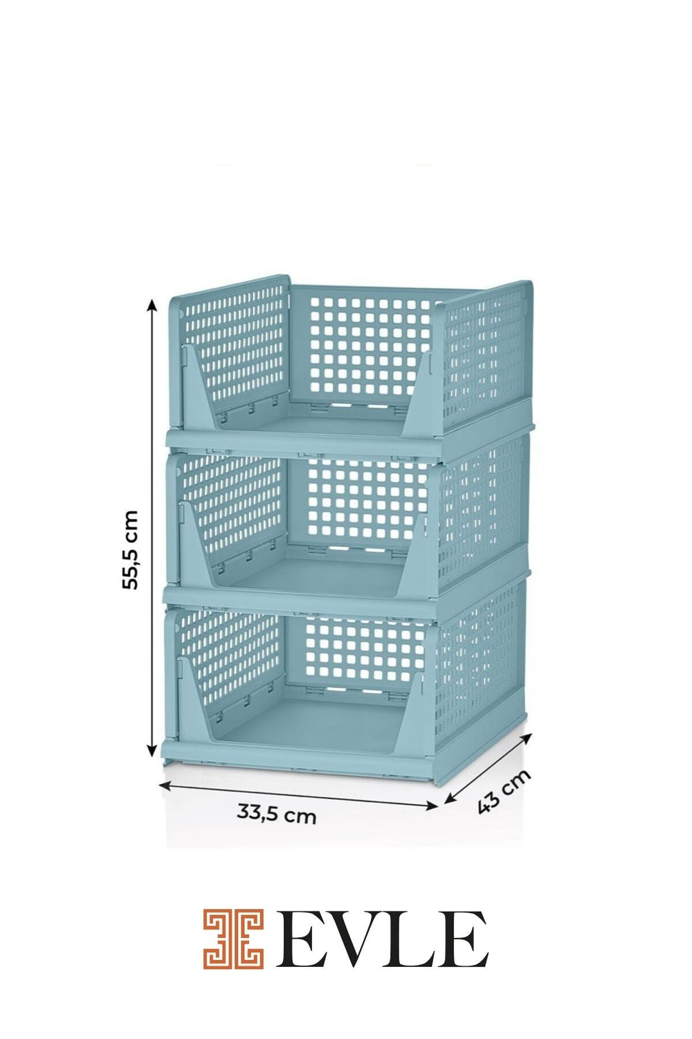 Öne çıkan özellikleri sayesinde evinizde düzen oluşturmak hiç bu kadar kolay olmamıştı. Modern ve şık flat blue rengi, her türlü dekorasyona uyum sağlar. Her bir rafın genişliği 33,5 cm, derinliği 43 cm ve toplam 3'lü set yüksekliği 55,5 cm'dir, bu da geniş bir depolama alanı sunar.