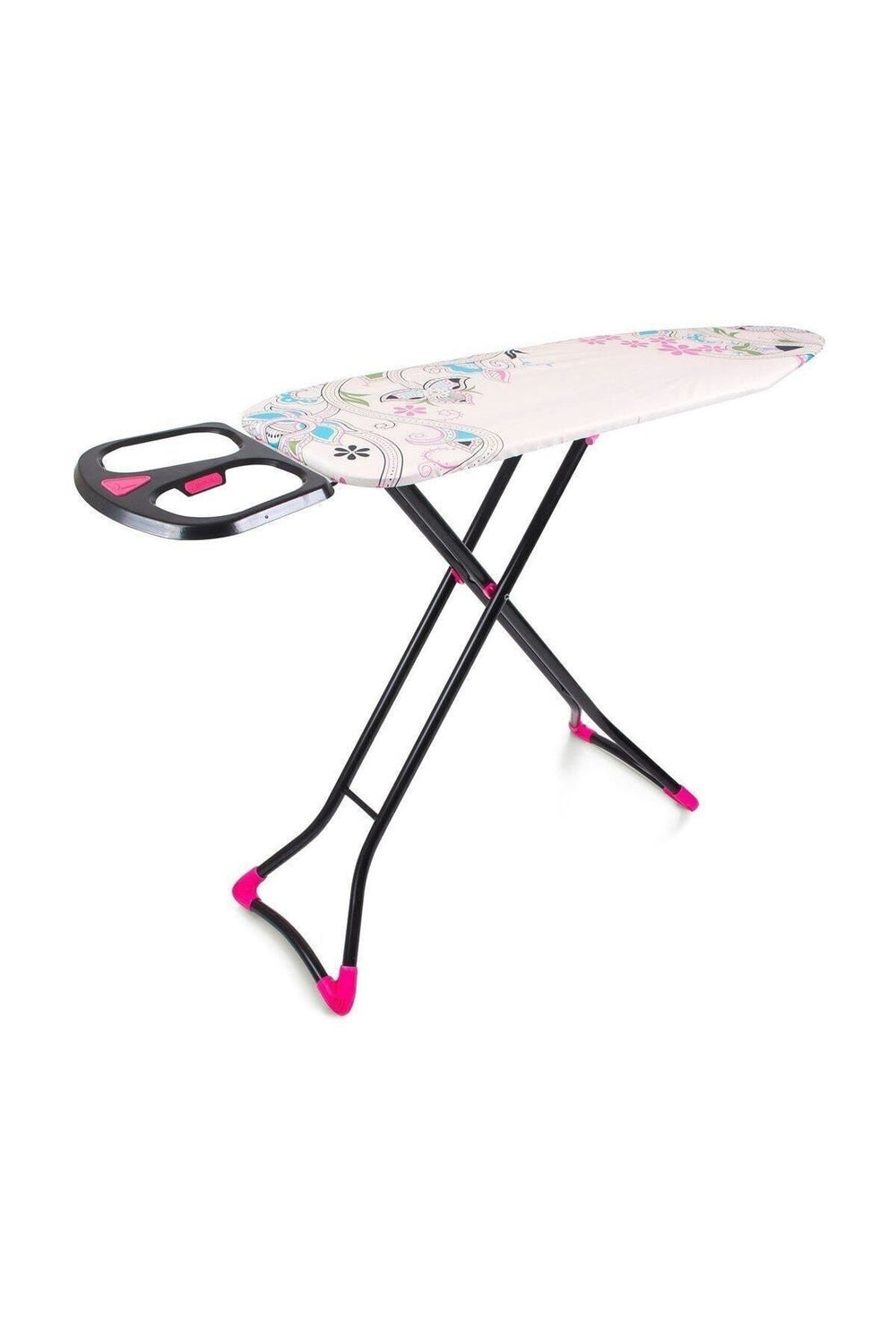 Renkli ve modern tasarımı, evinizin dekorasyonuna uyum sağlarken, pembe ve siyah detaylarla estetik bir görünüm sunar. Ütü masasının kaymayı önleyen ayakları, güvenli ve sabit bir duruş sağlar. Kaliteli malzemeleri ve üstün işçiliği ile uzun yıllar güvenle kullanabilirsiniz.