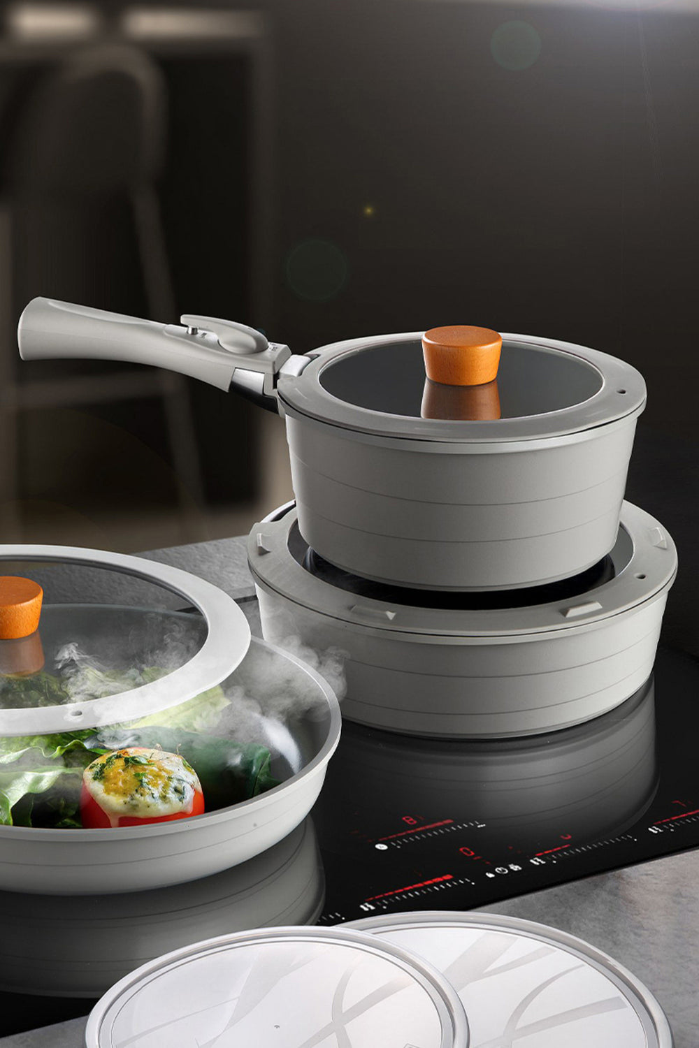 Neoflam Midas seti, çıkarılabilir sap özelliği ile dikkat çeker. Bu özellik, pişirme kabına mükemmel bir tutuş sağlar ve güvenli bir şekilde ayrılabilir. Böylece yemeklerinizi pişirdikten sonra kolayca saklayabilir veya servis yapabilirsiniz.