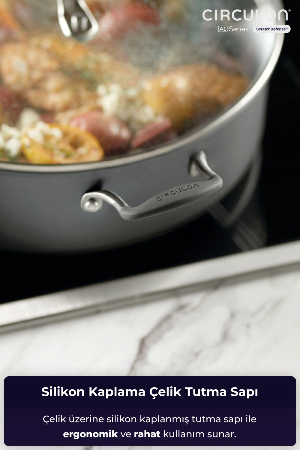 Circulon’un yenilikçi A1 Serisi ile tanışın ve mutfağınıza profesyonel bir dokunuş katın. Asla çizilmeyen ultra yapışmaz yüzeyi ve dayanıklı yapısıyla bu tencere, mutfakta en büyük yardımcınız olacak.